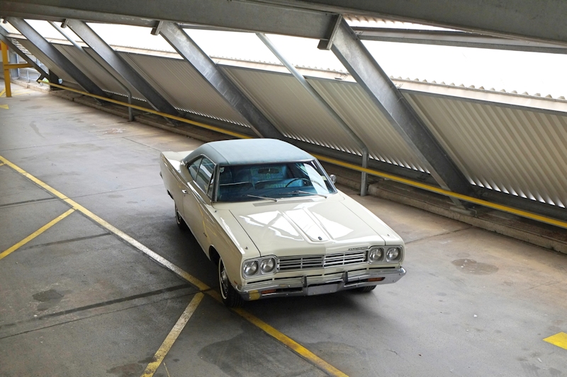 Als die junge Familie B. aus Palos Verdes, L.A. County, Ende 1968 versuchte, einen Satellite mit Modtop zu bekommen, musste sie die Erfahrung machen, dass es gar nicht leicht war, einen Händler davon zu überzeugen, ein derartiges Auto auch nur zu bestellen. Gekauft wurde das Objekt der Begierde schlussendlich bei Chrysler Plymouth Prince in L.A. Ob es eigens so geordert wurde (dafür würden die vielen, teuren Optionen sprechen), oder einfach ein sehr gut ausgestattetes Modell war, das bei einem großen Händler stand, bleibt wegen dem fehlenden Y-Code auf dem Fendertag unklar.