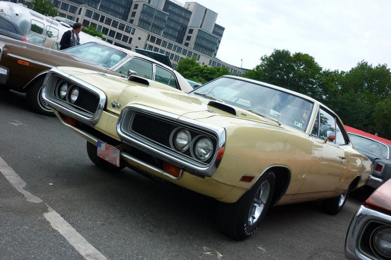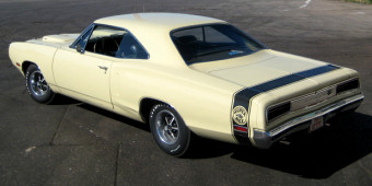 Ein weiteres Detail, das zumindest den Besitzer begeistert, ist die Lackierung in DY3 Cream, die noch zu 80% im Original vorhanden ist. Man kann erahnen, dass diese Farbe schon bei Produktion des Autos nicht sonderlich beliebt war, da nur 103 Super Bees in diesem Farbton vom Band liefen. Dem gegenüber stehen beispielsweise 1.926 produzierte Super Bees in FC7 Plum Crazy. Auch die Kombination mit dem grünen Interieur ist eher gewöhnungsbedürftig, wenn auch zeitgenössisch.